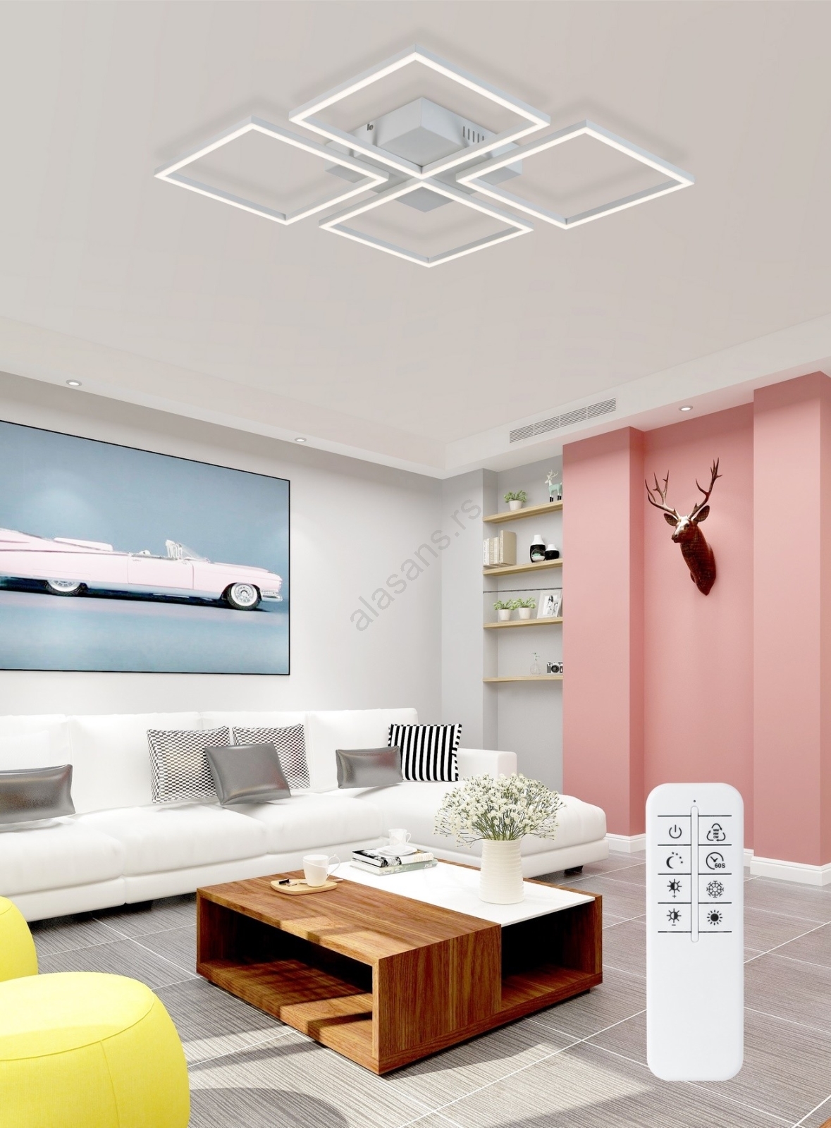 Top Light - prigušiva LED plafonski luster R4xLED/16,25W/230V kvadratni bela + daljinski upravljač |