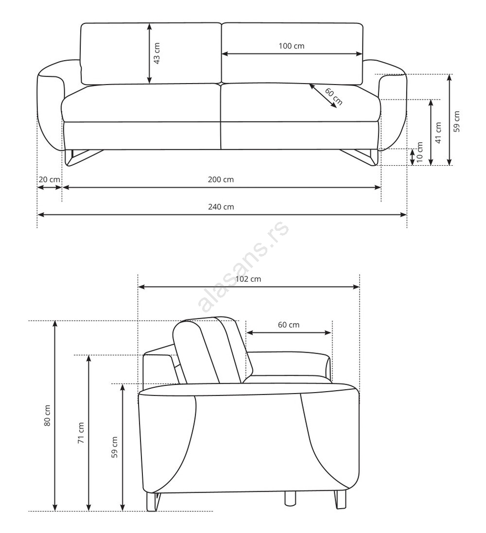 • Leđa sofe krasi kvalitetna presvlaka, što omogućava postavljanje sofe slobodno u prostoru.