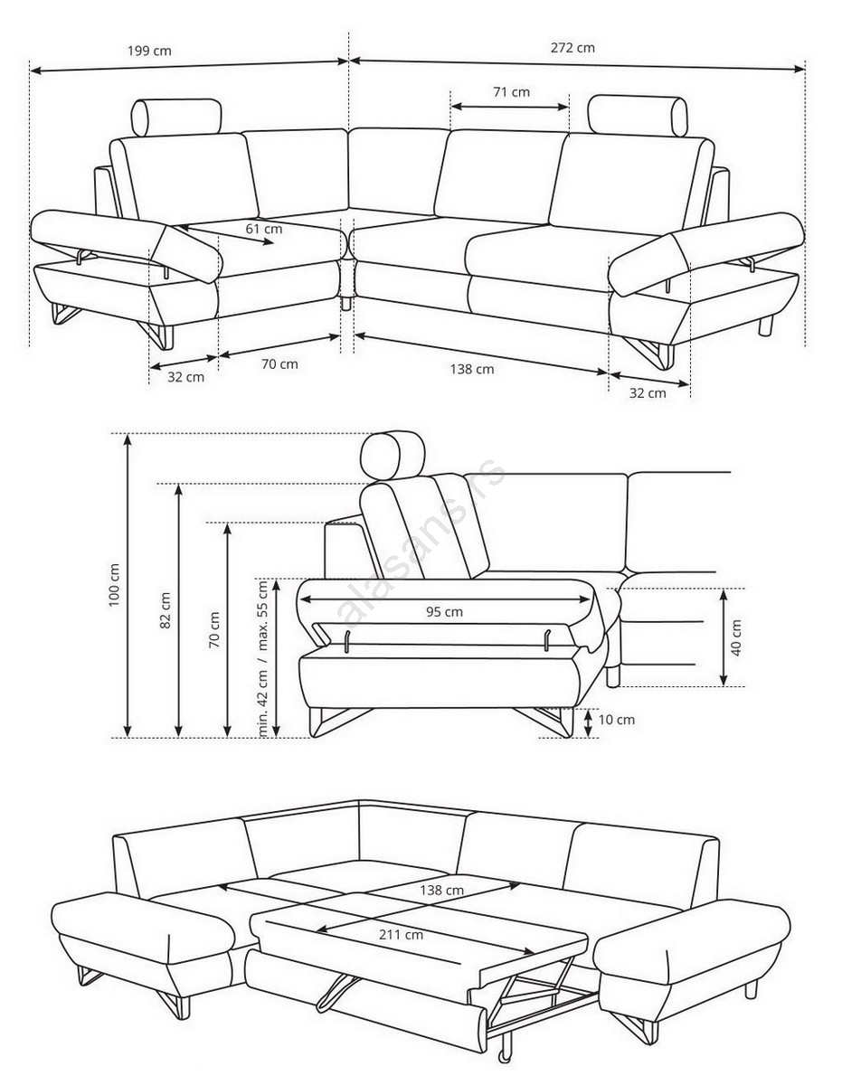 • Garnitura ima prostran prostor za odlaganje posteljine i ostalih sezonskih stvari.