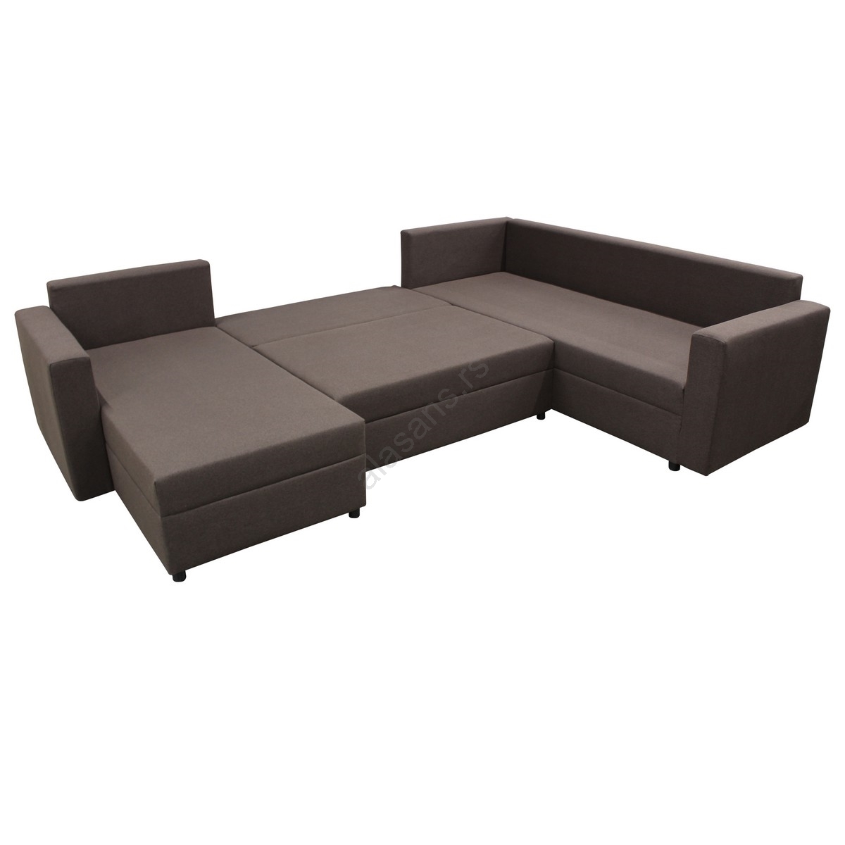 • Univerzalna rastegljiva ugaona garnitura u obliku slova U SEYA, braon, sa prostorom za odlaganje