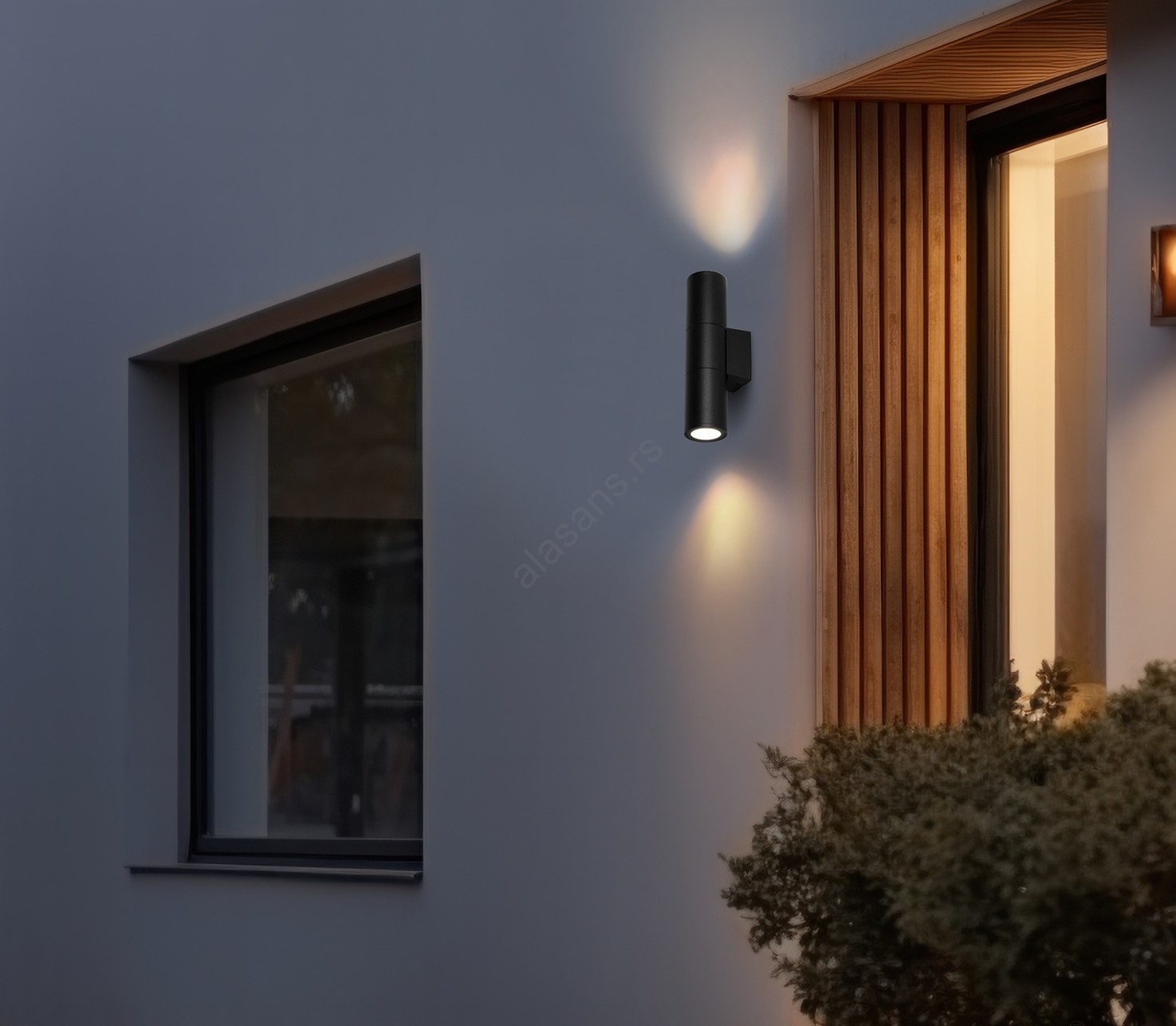 Spoljašnje zidno svetlo 2xGU10/35W/230V IP54, okruglo, crne boje | Alasans
