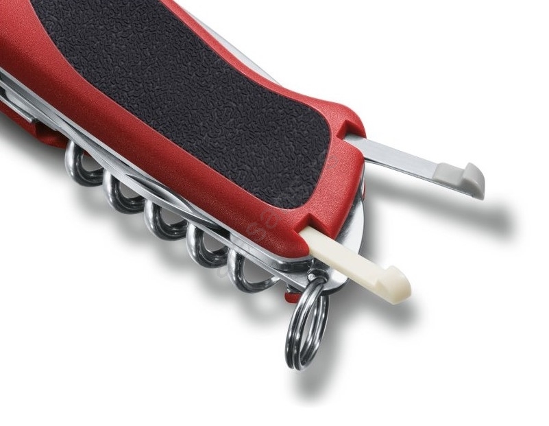 • Poseduje 12 funkcija: velika oštrica, testera za drvo, križni odvijač, otvarač za konzerve sa malim odvijačem, otvarač za flaše sa odvijačem, skidač izolacije sa žica, reamer (probijač), šiljak, prsten za ključeve od nerđajućeg čelika, pinceta, čačkalica.