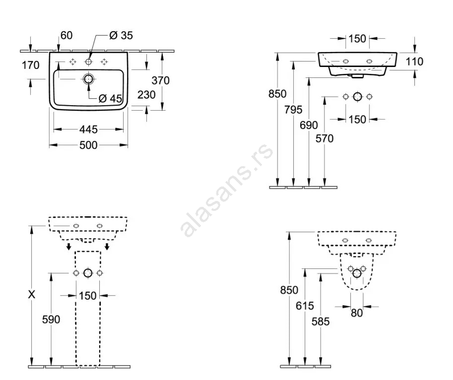 Villeroy & Boch 43445001 - Viseći umivaonik O.NOVO 50x37 cm keramika/bela | Alasans