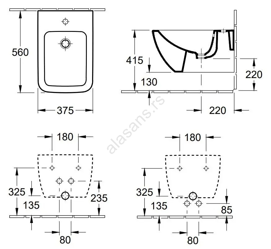 • Pakovanje sadrži bide bez sifona i slavine.