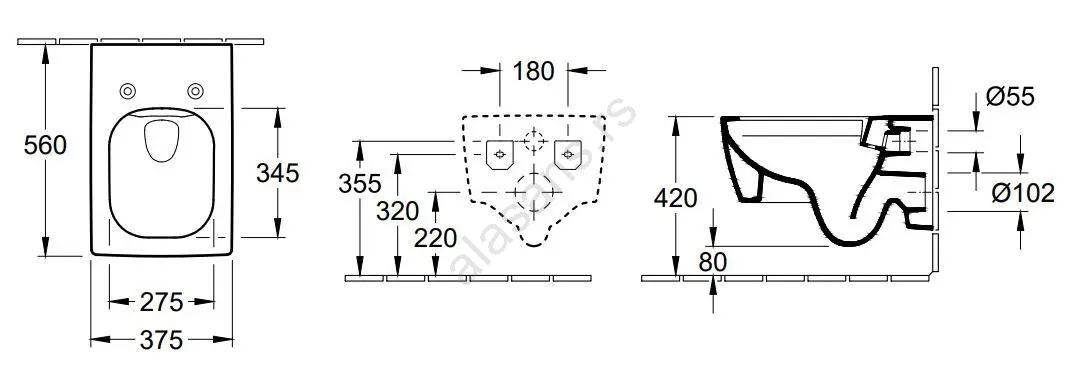 • Cisterna, taster za ispiranje i WC daska nisu uključeni u pakovanje.