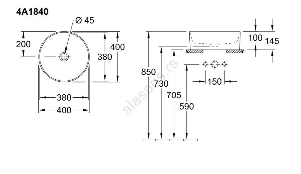 Villeroy & Boch 4A184001 - Umivaonik na ploču COLLARO, prečnik 40 cm, keramika/bela | Alasans