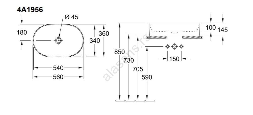 Villeroy & Boch 4A195601 - Umivaonik na ploču COLLARO 56x36 cm keramika/bela | Alasans