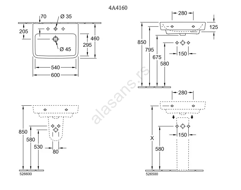 Villeroy & Boch 4A416001 - Viseći umivaonik O.NOVO 60x46 cm keramika/bela | Alasans