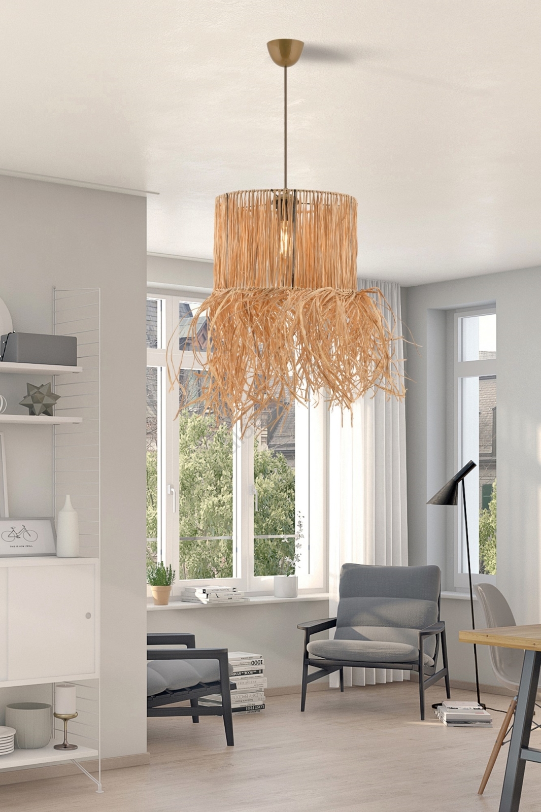 Viseća lampa na kablu NESS 1xE27/40W/230V – abažur od rafije | Alasans