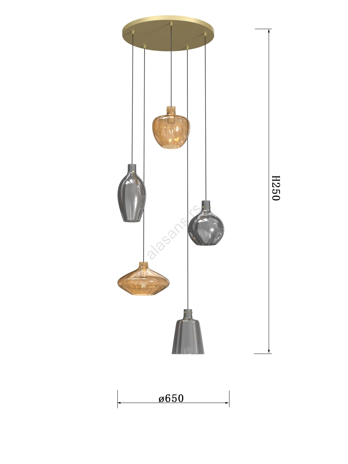 Wofi 5005-501 - Luster na sajli ROUEN 5xE14/40W/230V zlatna/siva | Alasans