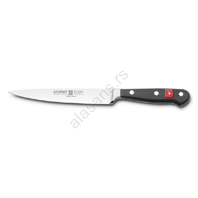 • Crna drška od specijalnog sintetičkog materijala sa logotipom Wüsthof.