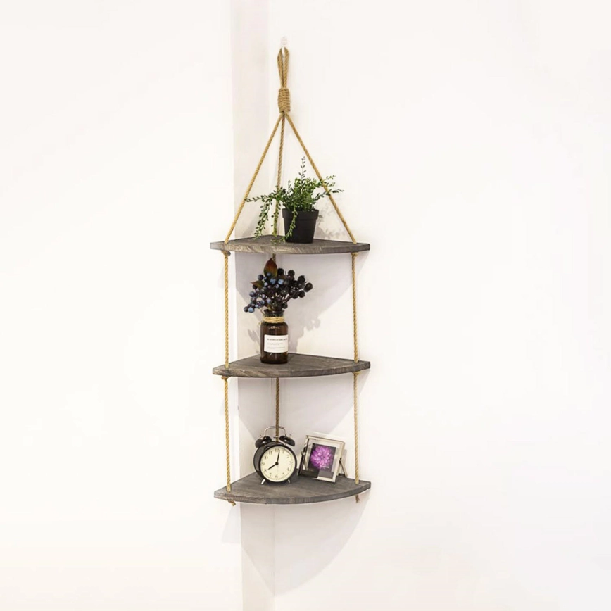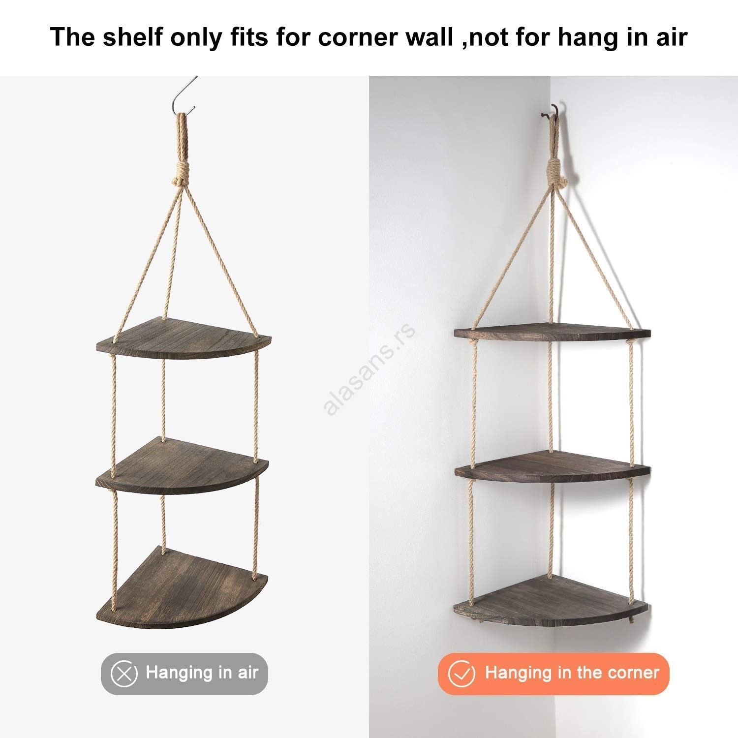 Zavesna ugaona polica 90x25 cm braon | Alasans