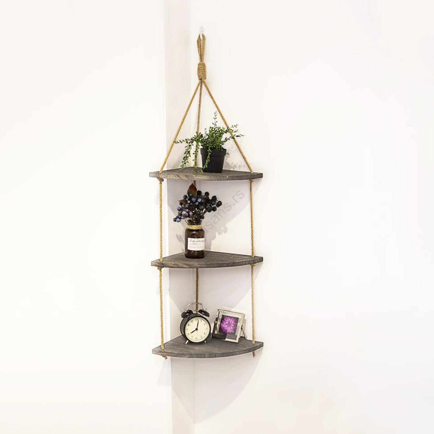 • Zidna polica od smrekovog drveta sa konopcem.