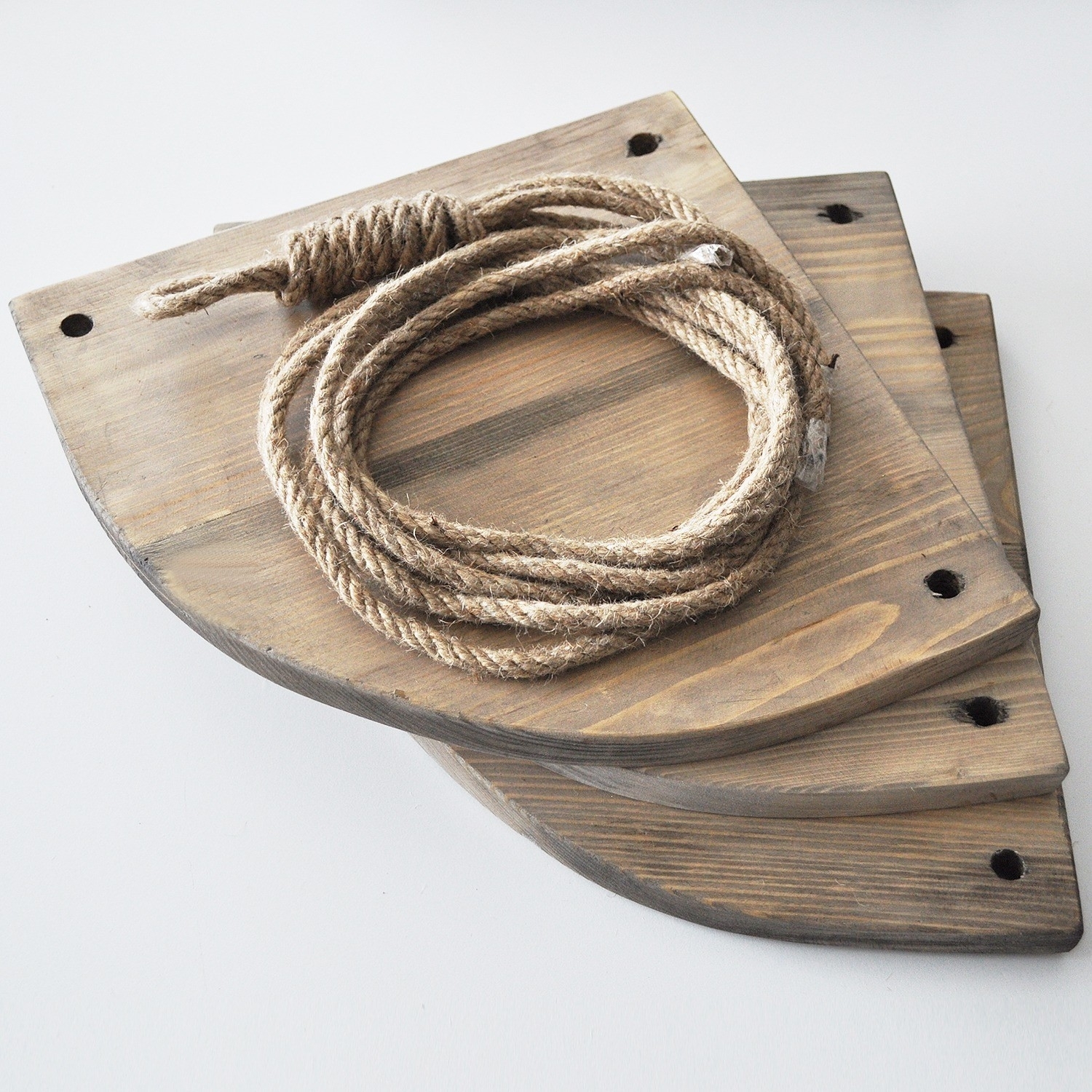 • Kombinacija smrekovog drveta i konopca.