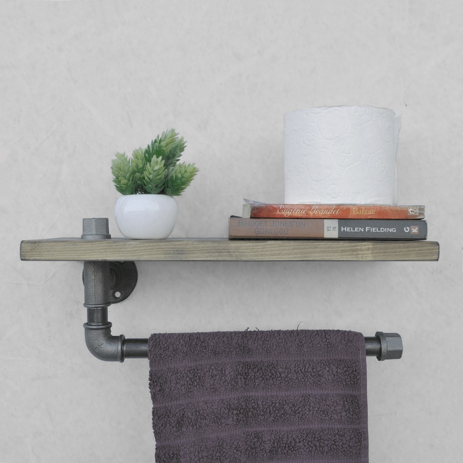Zidna polica sa držačem peškira BORURAF 16x40 cm smreka/crna | Alasans