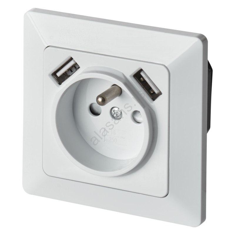 Zidna utičnica za kućnu upotrebu sa USB priključkom — francuski standard (250V/16A) | Alasans