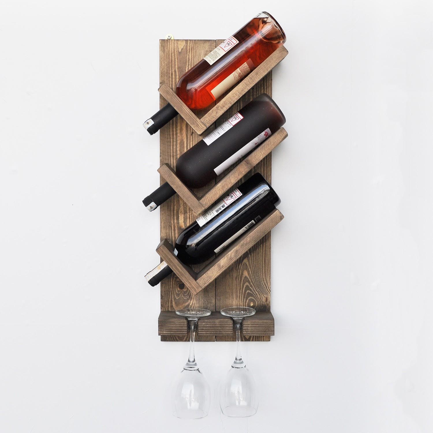 • Zidni nosač za vino izrađen od smrekovog i borovog drveta.